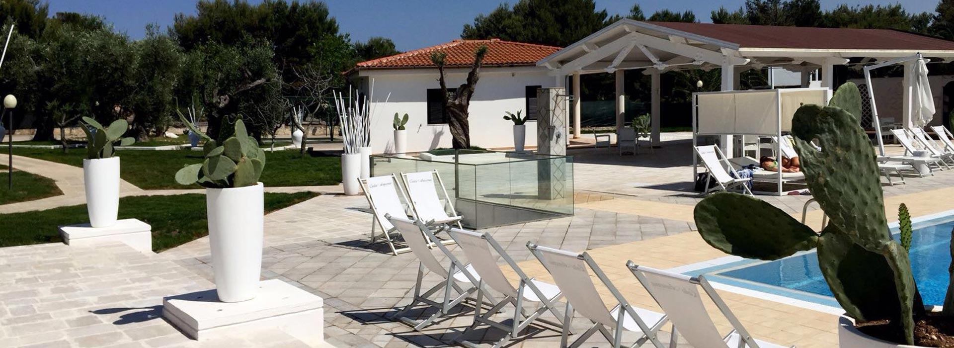 Adiacente alla piscina vi è un grande gazebo utilizzato per spettacoli, mini club e momenti ricreativi ed un curato prato inglese con piante secolari di ulivi, pini d'Aleppo e fichi d'India.